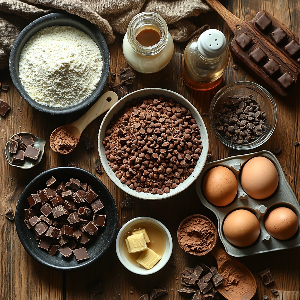 In a large mixing bowl, sift together the flour, brown sugar, cocoa powder, espresso powder, baking powder, baking soda, and fine sea salt. This combination forms the flavor foundation and guarantees an even distribution of leavening agents.