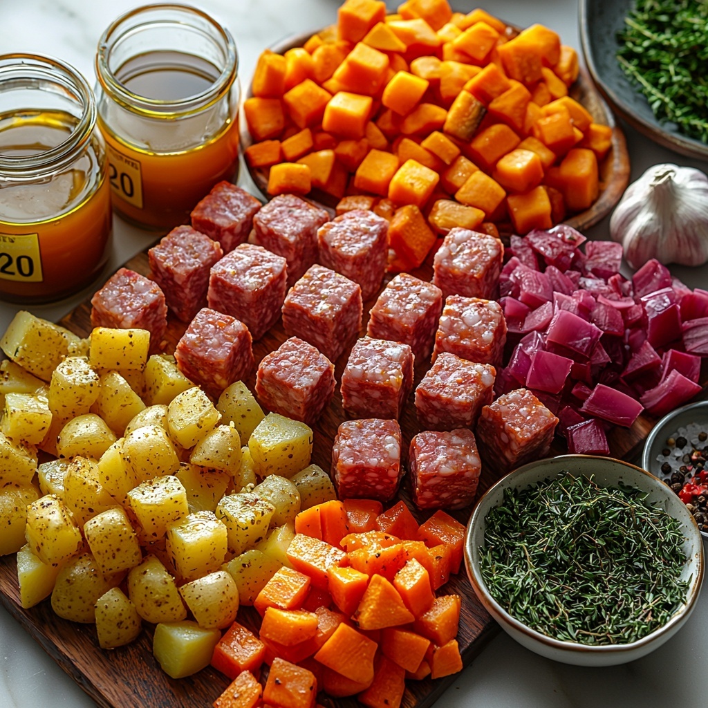 - Potatoes (1.5 lbs / 700g): Peeled and diced, they provide a creamy, comforting base that absorbs the savory juices perfectly.