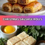 These Easy Christmas Sausage Rolls are a festive and savory snack perfect for holiday gatherings. Made with flaky puff pastry wrapped around seasoned sausage meat, finely grated onion, and fresh herbs, they bake to a golden crisp and make a delightful appetizer or party finger food.
