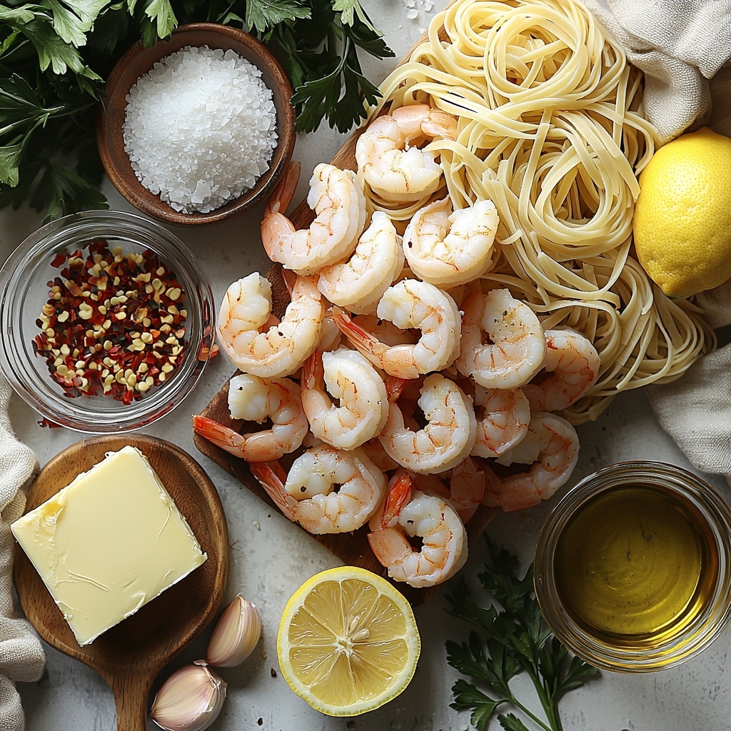 Gathering the right ingredients is the first step to nailing this Famous Red Lobster Shrimp Scampi Recipe. These simple staples each play a critical role, from the savory depth of butter to the fresh brightness of lemon, creating a perfectly balanced dish that’s as colorful as it is flavorful.