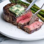 - Rest the steaks: Remove the steaks from the skillet and transfer them to a plate. Tent loosely with aluminum foil and let rest for 5-10 minutes so the juices redistribute. Serve topped with your choice of garlic herb butter, caramelized onions, or sautéed mushrooms.