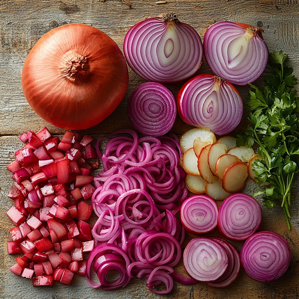 - 1 onion (sweet, red, or yellow): The star of the show; choosing the right variety sets your dish’s flavor profile from mild and sweet to sharp and pungent.