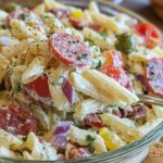 Pour the prepared dressing over the salad mixture and toss gently until every ingredient is evenly coated. Take your time here; you want the dressing to marry with the pasta and vegetables without breaking down the lettuce too much. This step is crucial to deliver that authentic Italian Grinder Pasta Salad Recipe experience, where each forkful is creamy, tangy, and bursting with layers of flavor.