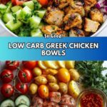 This Low Carb Greek Chicken Bowls recipe is a fresh, flavorful, and healthy meal perfect for lunch or dinner. Featuring marinated grilled chicken paired with crisp cucumbers, juicy tomatoes, tangy olives, and creamy tzatziki sauce, it’s a delicious bowl full of Mediterranean-inspired flavors and nutritious ingredients, all while keeping the carb count low.