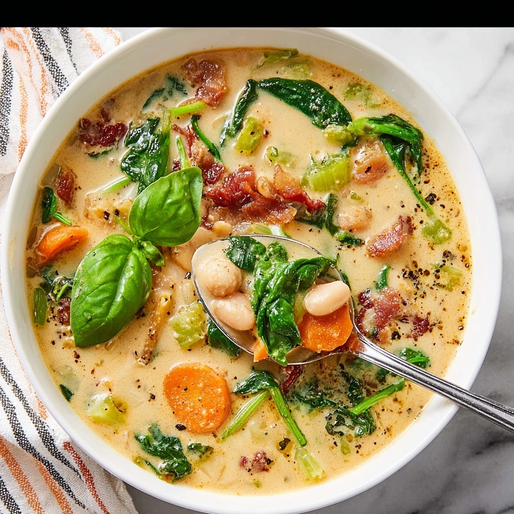 Marry Me White Bean Soup is a creamy, flavorful, and hearty soup combining tender white beans, sun-dried tomatoes, aromatic herbs, and fresh baby spinach. This easy-to-make stovetop soup is perfect for a comforting meal, balancing creaminess with a subtle kick from red pepper flakes and freshness from parmesan cheese and basil.