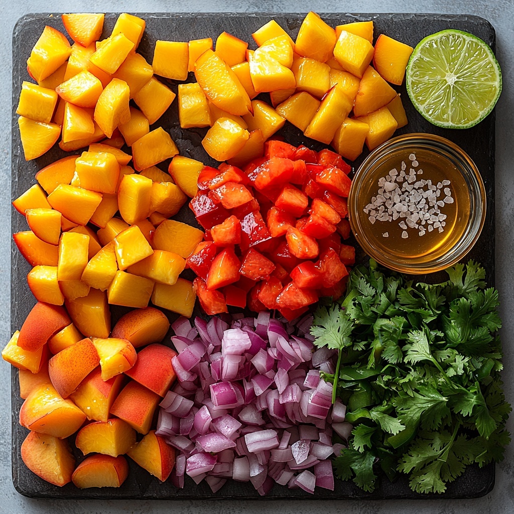 A vibrant and refreshing Peach Salsa recipe that blends ripe peaches with fresh vegetables and herbs, perfect as a sweet and spicy appetizer or a delicious complement to grilled meats and seafood. This vegan, no-cook salsa is quick to prepare and ideal for summer gatherings.
