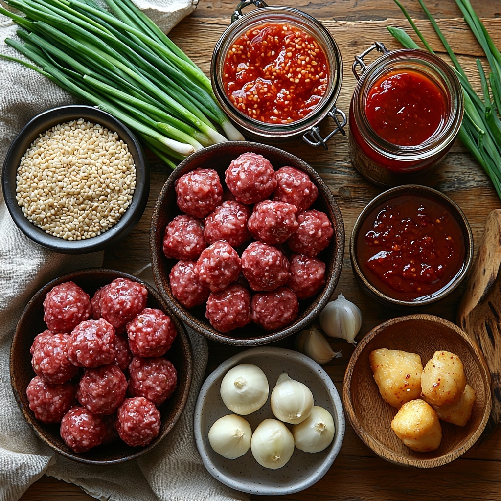 The magic of this Savory Tender Korean BBQ Meatballs with Spicy Mayo Dip Recipe lies in its straightforward but thoughtfully selected ingredients. Each one plays a crucial role in creating layers of flavor, tender texture, or that vibrant color that makes the dish pop.