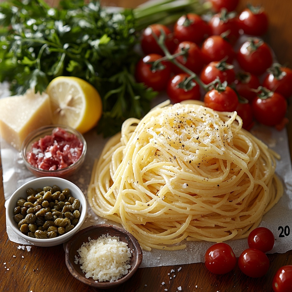 A quick and flavorful Italian main course featuring spaghetti tossed with tuna, capers, fresh lemon, and garlic. This easy stovetop recipe combines pantry staples into a light yet satisfying meal perfect for weeknights.
