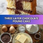 This Three Layer Chocolate Pound Cake Recipe pairs beautifully with a scoop of vanilla ice cream or a dollop of freshly whipped cream. For an adult twist, serve it alongside a glass of rich coffee or a smooth dessert wine to enhance each bite’s decadent flavor.